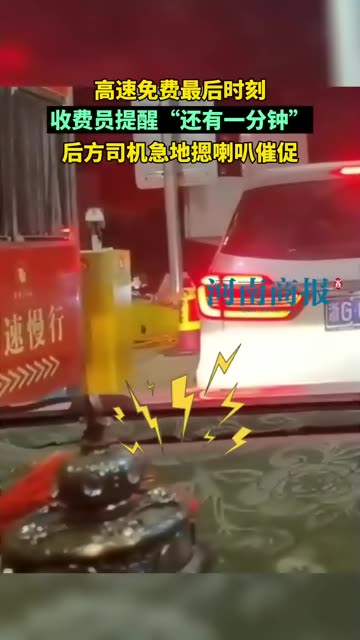 49次播放 | 00:17高速免费最后时刻,收费员提醒“还有一分钟”,后方司机急地摁喇叭催促