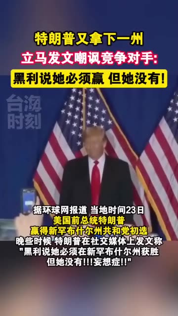 特朗普又拿下一州,立马发文嘲讽竞争对手:黑利说她必须赢,但她没有!