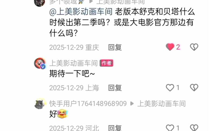 2025年12月29日上美影动画车间官方回复先期待一下吧老版本舒克和贝塔第二季老版本舒克和贝塔大电影