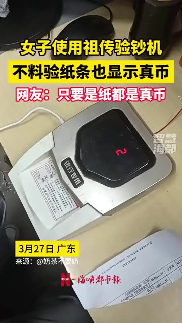 0次播放 | 03:00女子使用祖传验钞机,不料验纸条也显示真币!网友:只要是纸都是真币