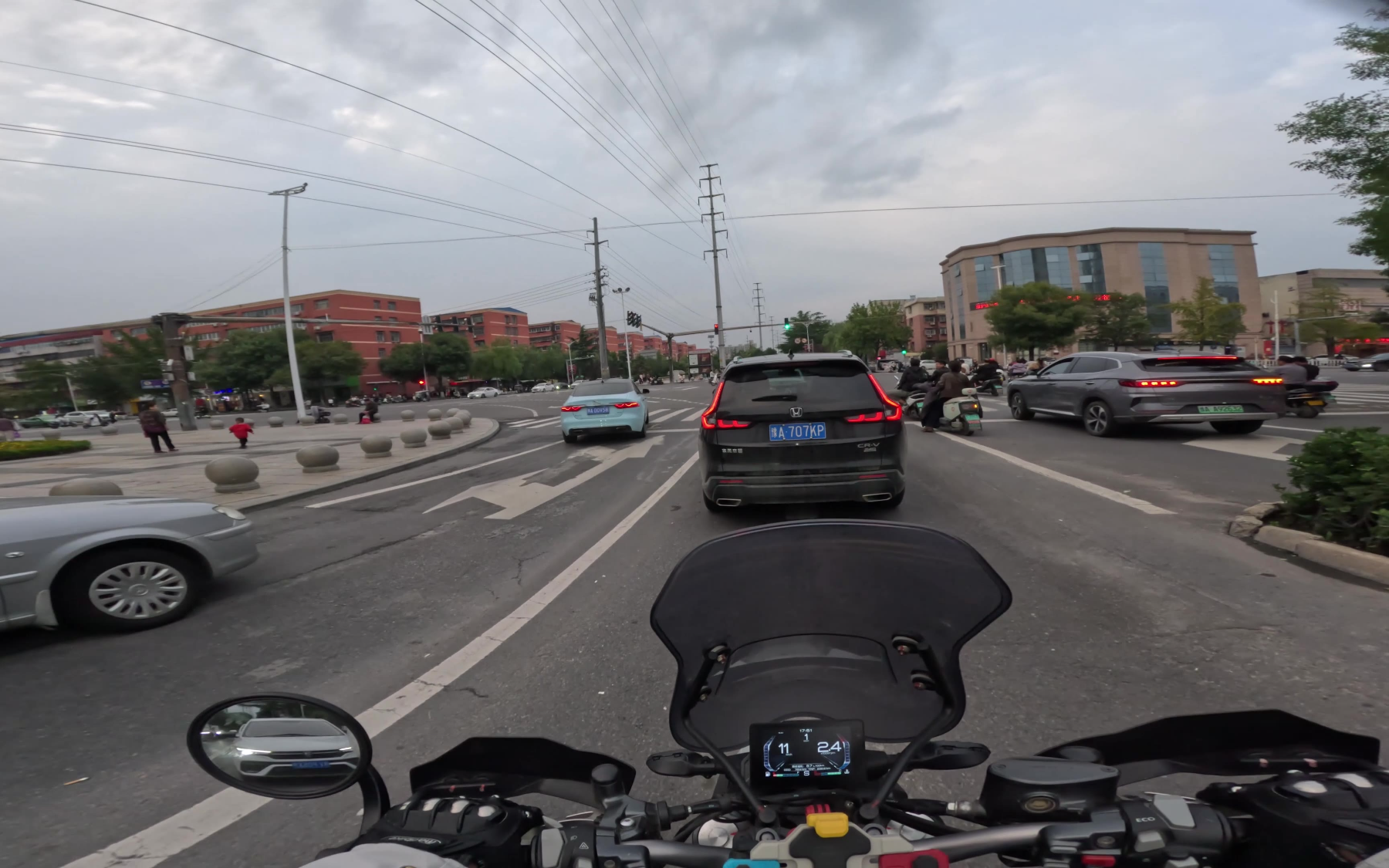 很难想像,一对骑摩托的情侣,完美复制了开车时驾驶位和副驾驶位的争执:“你刚刚变道为什么没打灯?”“你跟车跟太近了,慢点!”“你刚压线了没看到么?”“刚刚那车明显要拐弯,你咋没预判呢?”“骑车要多看后视