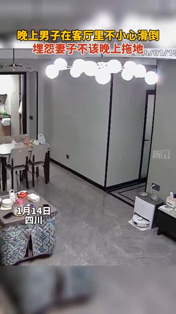0次播放 | 08:00晚上男子在客厅里滑倒,埋怨妻子不该晚上拖地。