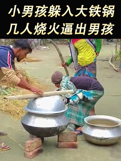 0次播放 | 01:08小男孩被三名村民堵在铁锅里面燃烧