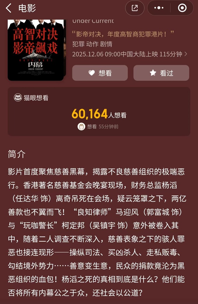 让我看看有什么内幕!上映两天就暴死的内幕!原本看到这个片子的预告时还是挺有兴趣的,这么多老面孔,看看不亏。结果今天在某APP上买票时居然在“热映”界面找不到这片子了,心里暗觉不好,好在点进具体的影院页