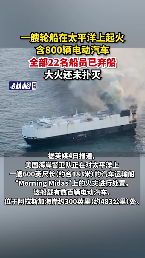 22次播放 | 03:56一艘轮船在太平洋上起火,含800辆电动汽车,全部22名船员已弃船,大火还未扑灭