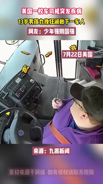 校车司机突发疾病,13岁男孩力挽狂澜救下一车人,网友:少年强则国强