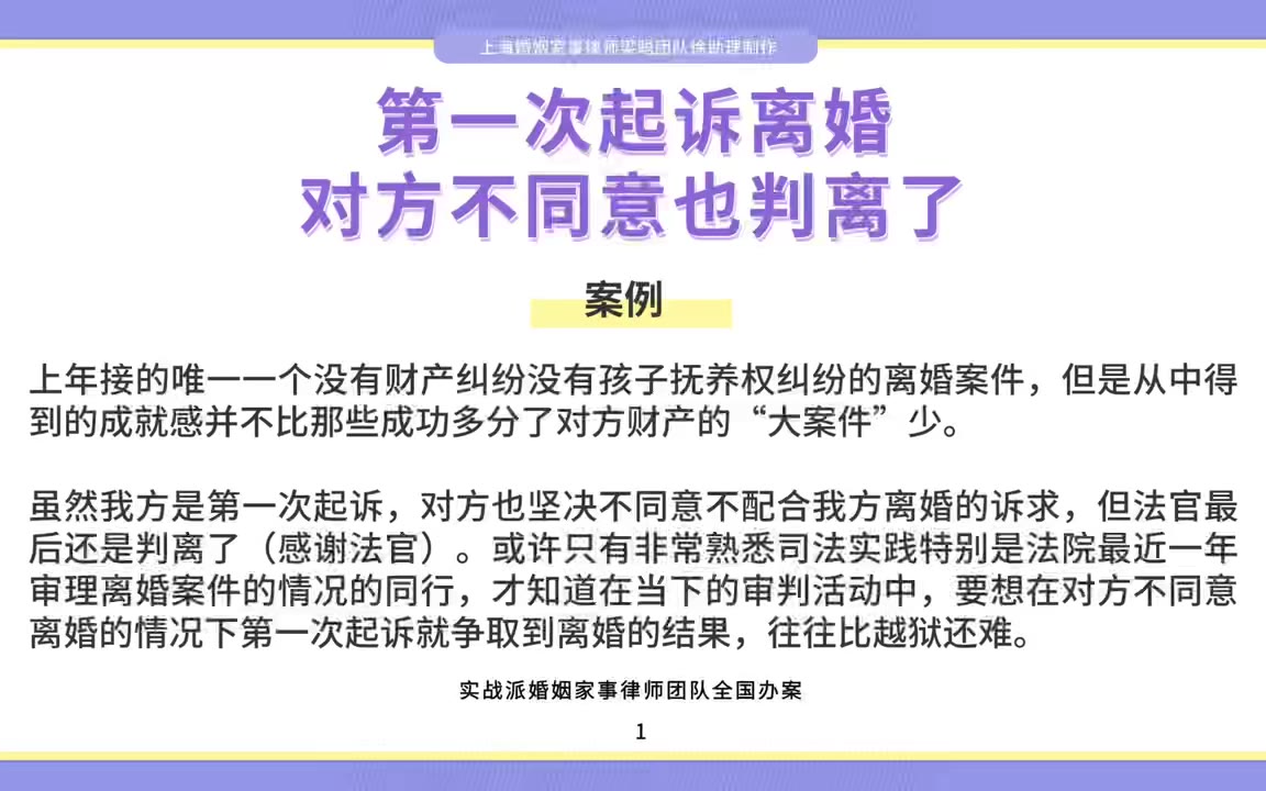 上海婚姻家事律师梁聪:第一次起诉离婚对方不同意也判离了