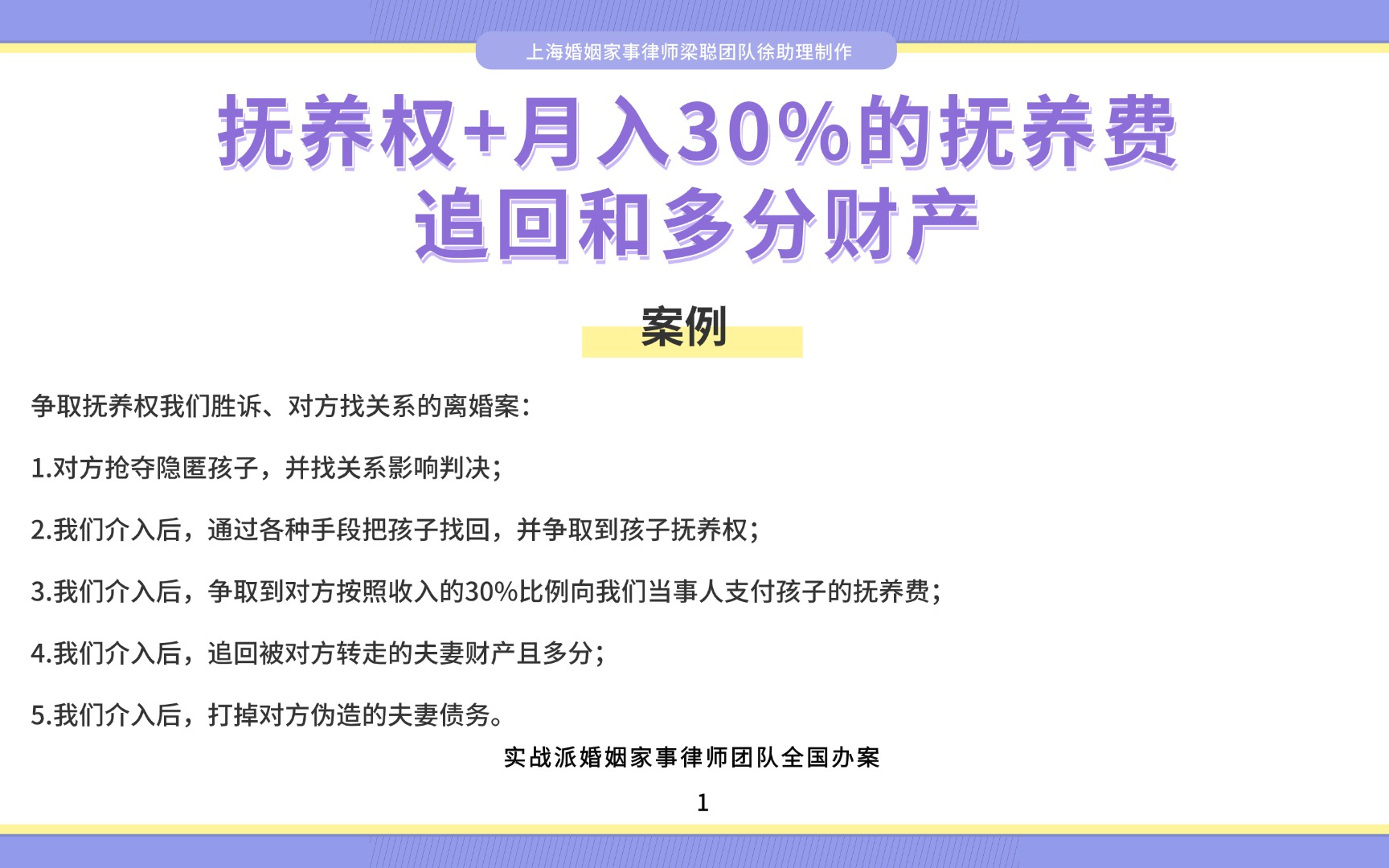 上海离婚律师梁聪律师:抚养权+月入30%的抚养费追回和多分财产