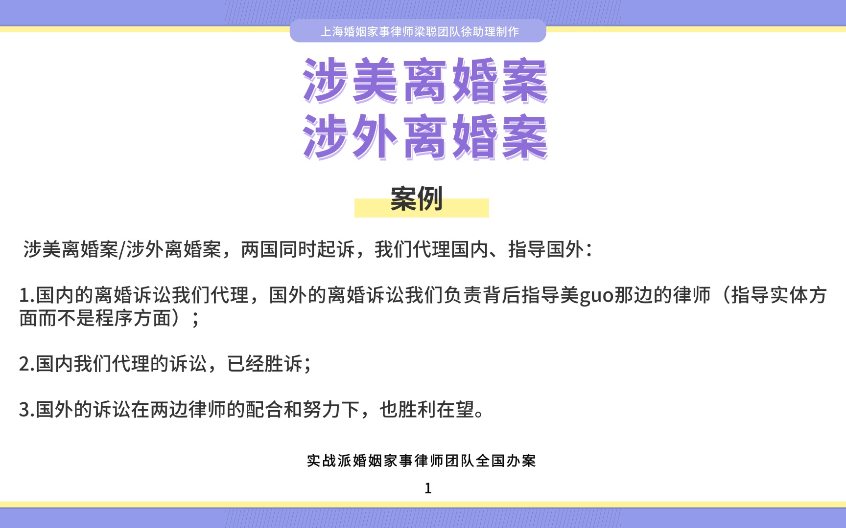 上海离婚律师梁聪律师团队原创:涉美离婚案/涉外离婚案