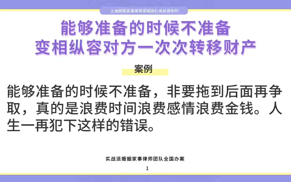 上海律师:能够准备的时候不准备,变相纵容对方一次次转移财产