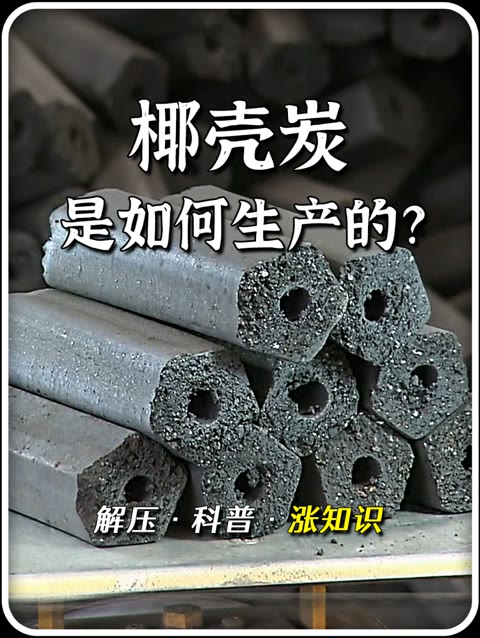 椰壳炭是如何生产的?先将椰子壳燃烧20小时,炭化后再加入淀粉