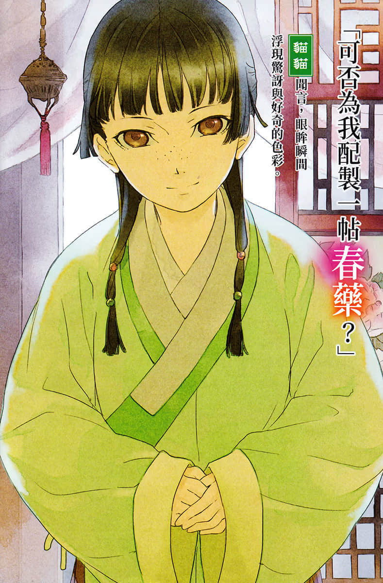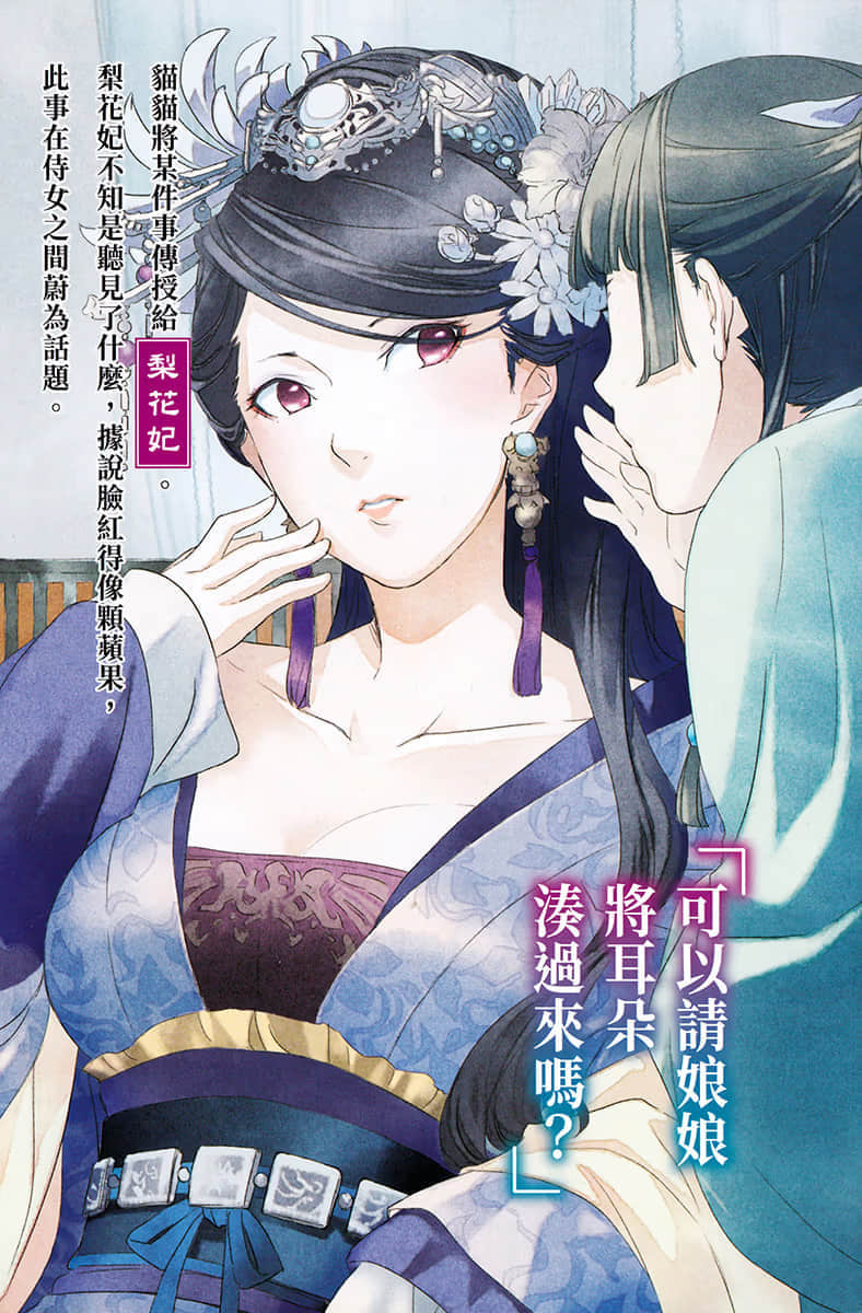 故事发生在位于大陆中央的某大国,少女猫猫原本在烟花巷担任药师,后被卖入皇宫成为下女。在宫中,猫猫凭借其丰富的药理知识和推理能力,解决了皇子们年幼早夭的谜团,并在后宫中处理各种悬疑案件。她的才能引起了美