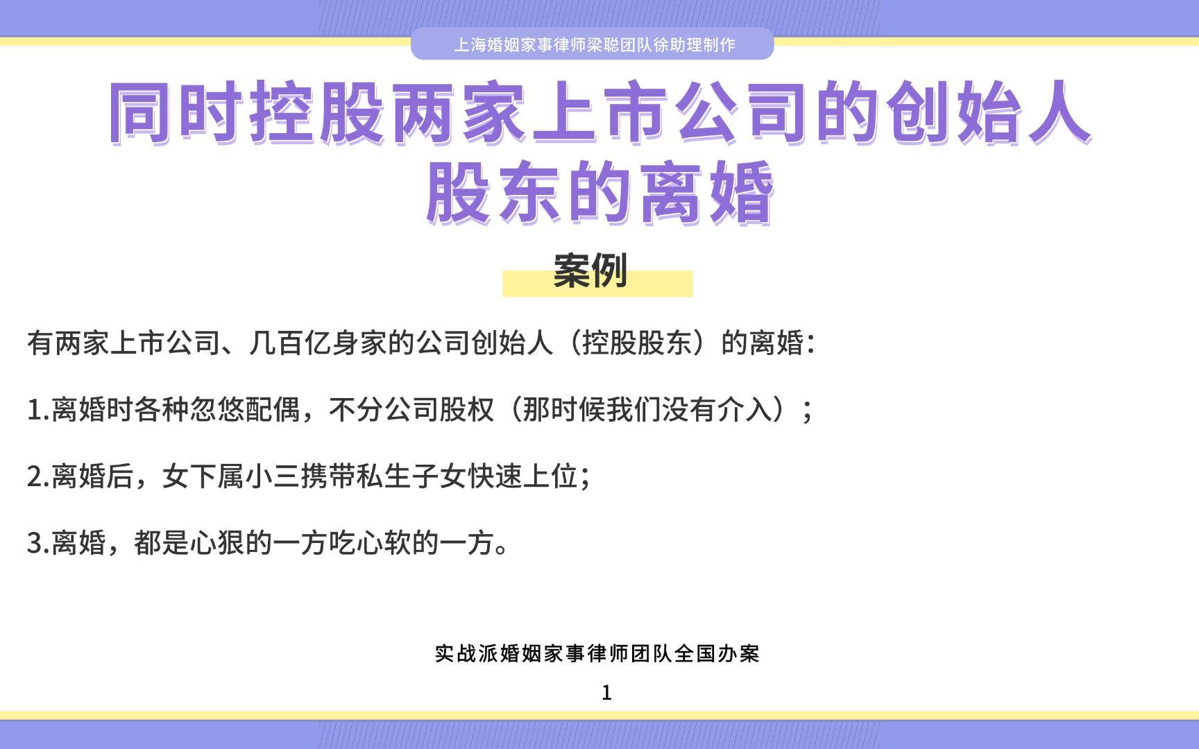 0次播放 | 00:13上海离婚律师梁聪律师团队原创:公司上市前的离婚博弈