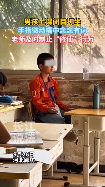 老师拍到的一幕:别的小朋友都在认真写作业,一个小男孩竟然闭目打坐。