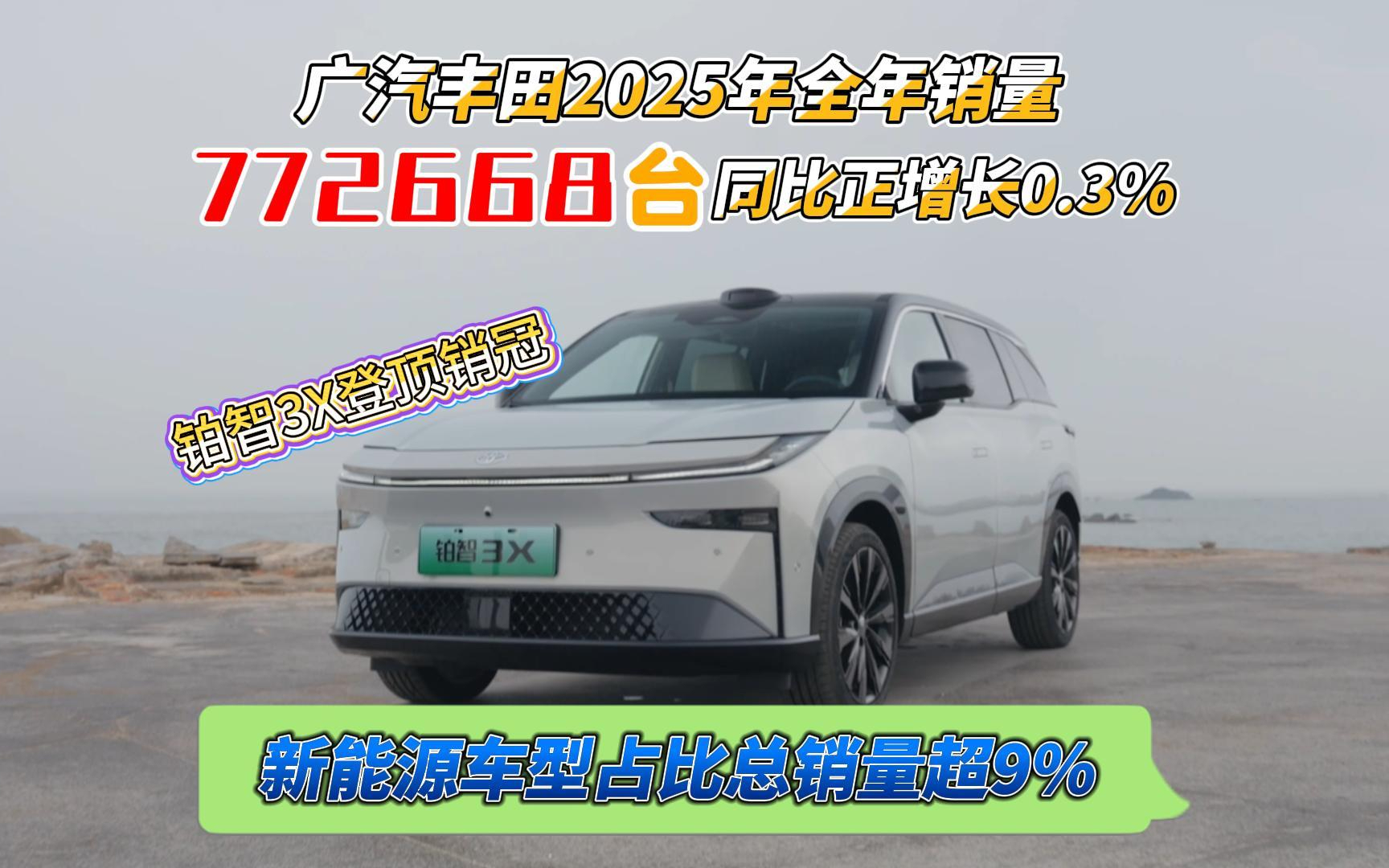 广汽丰田2025年全年销量:772668台,铂智3X登顶销冠,合资大厂这波太实在