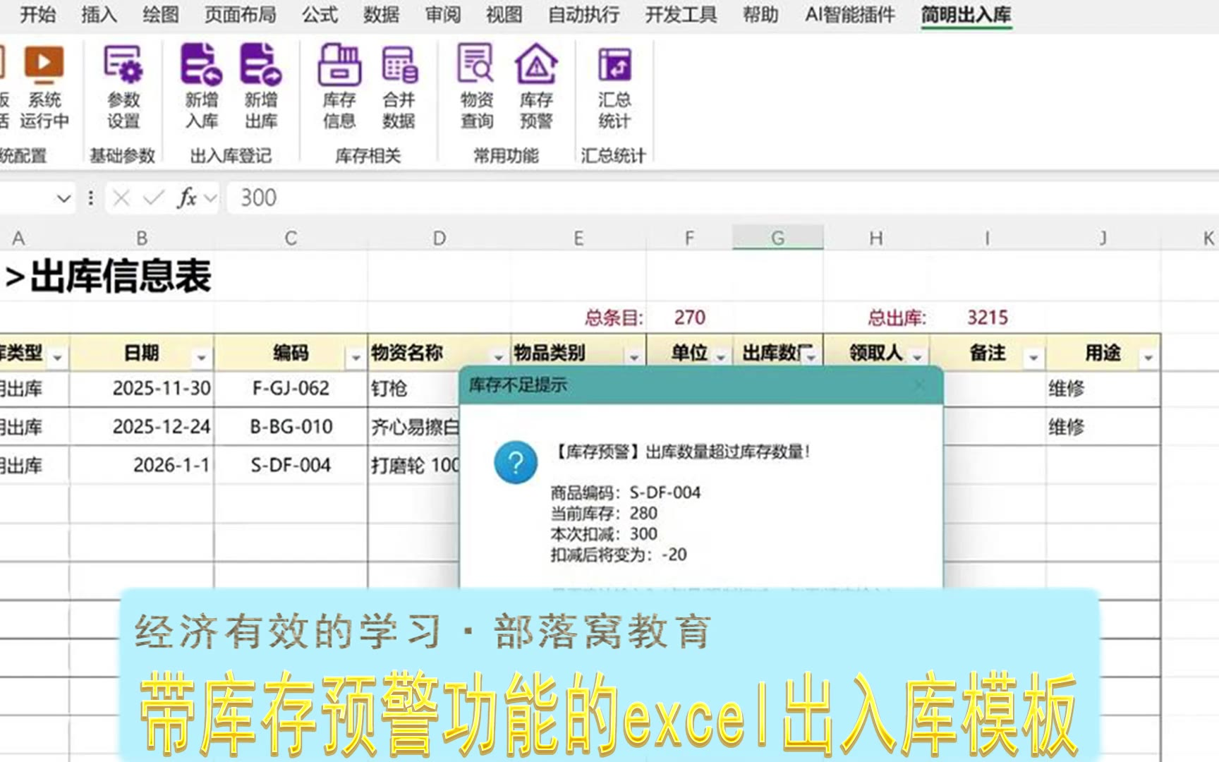 带库存预警功能的excel出入库模板