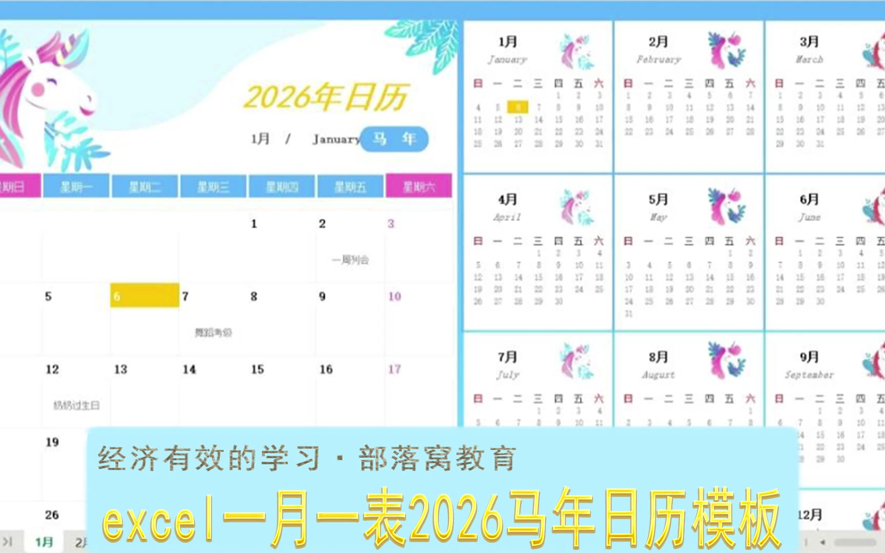 excel一月一表2026马年日历模板