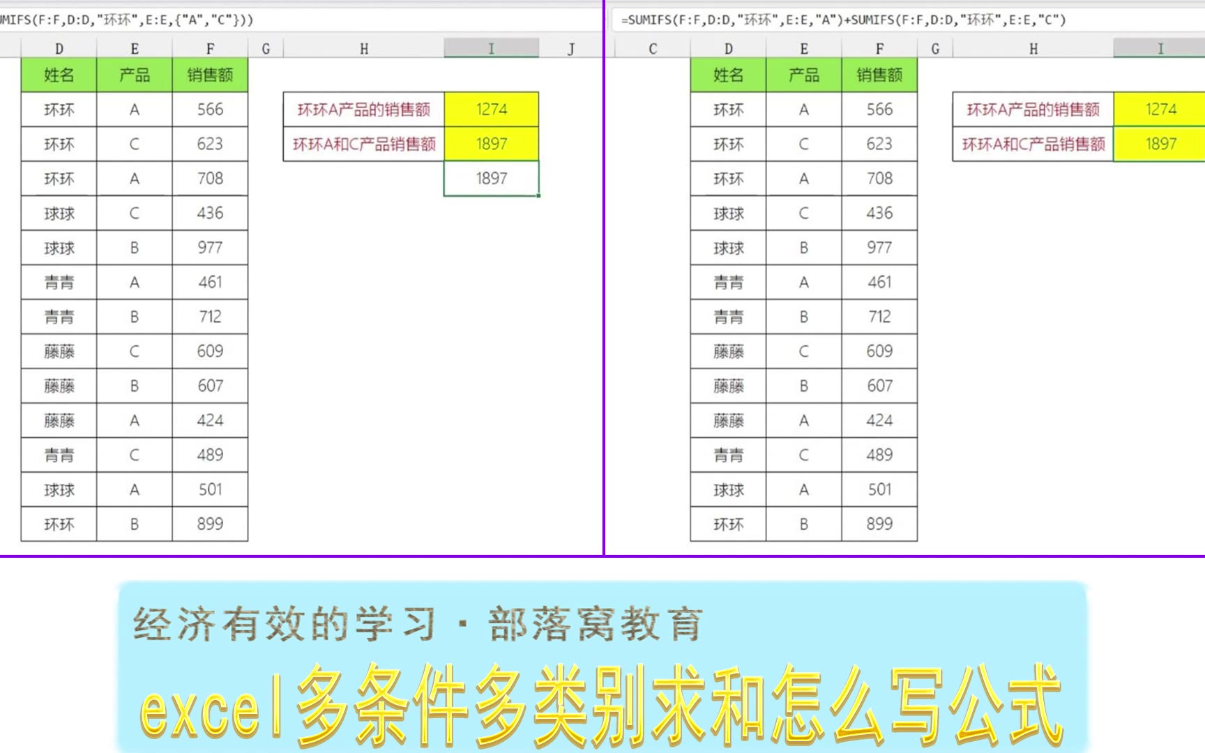 excel多条件多类别求和怎么写公式?