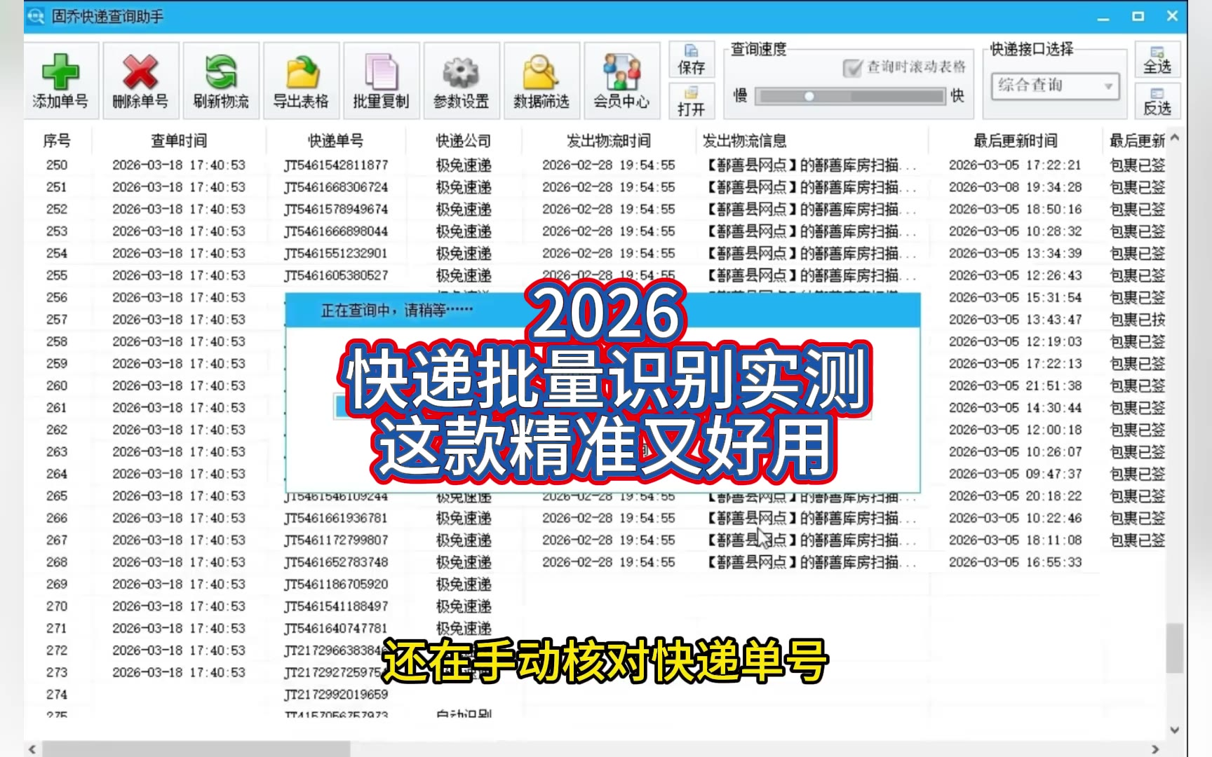 156次播放 | 00:41物流单号批量查询-固乔查询助手