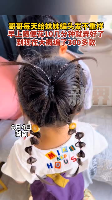 哥哥每天给妹妹编头发不重样,早上随便花10几分钟就弄好了,到现在大概编了300多款。