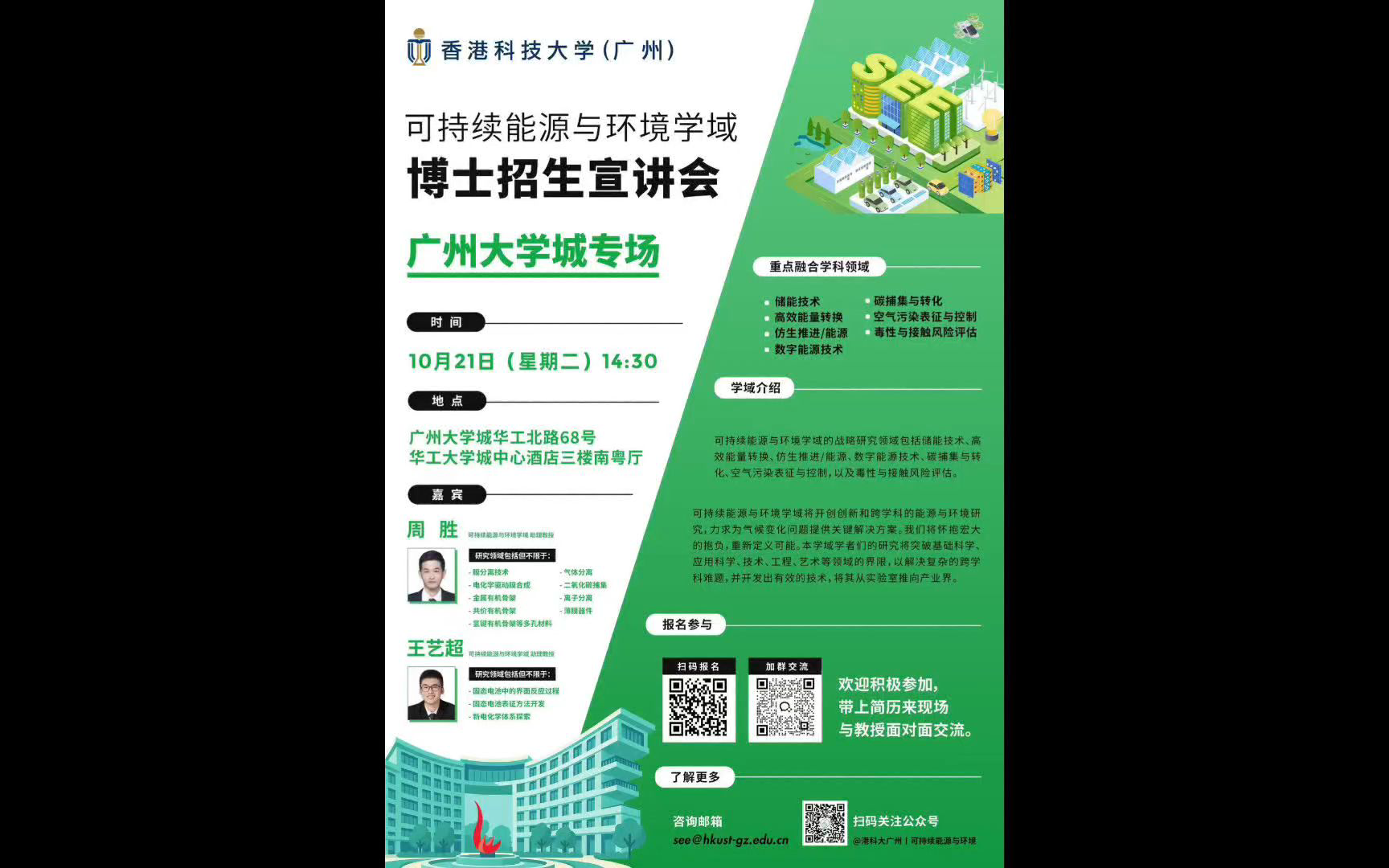 香港科技大学广州|可持续能源与环境学域博士招生宣讲会—广州大学城专场