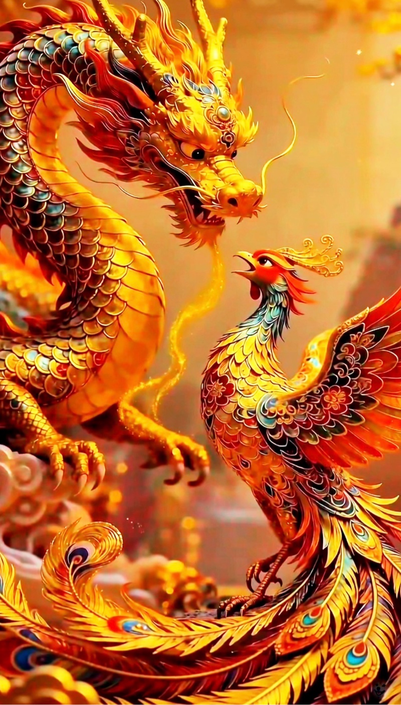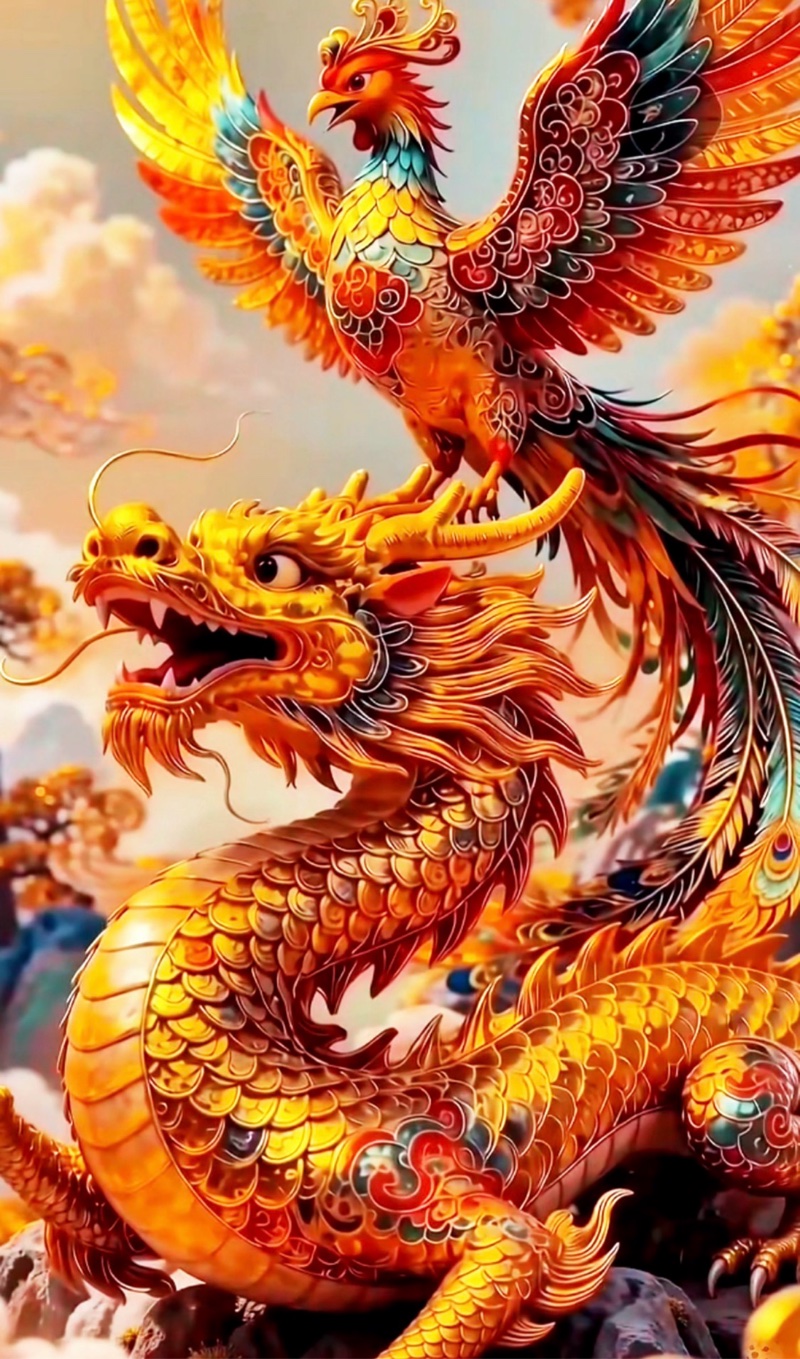 谁说神话只能活在传说里?这三张图片,直接把“龙凤呈祥”升级成了“赛博祥瑞”!第一眼看到时,我差点惊掉下巴——这哪里是传统图腾,分明是未来战场的终极兵器!龙的每一片鳞甲都是精密咬合的合金装甲,关节处的液