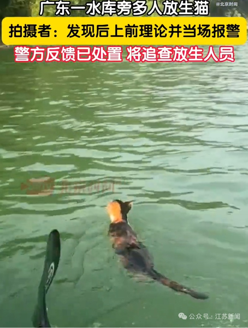 广东爱猫人士放生多只猫咪引争议!视频中猫咪直接跳入水库
