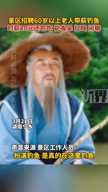 景区招聘60岁以上老人带薪钓鱼,时薪20元还包吃 能发呆 打盹 闲聊 4