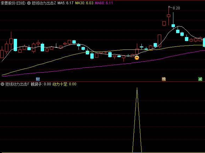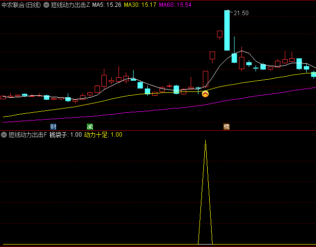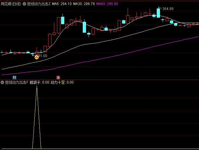 通达信短线动力出击主图/副图/选股指标,出现金叉且成交量大于前一天的一半时,是具有上涨潜力的目标 主图指标解析 均线系统: MA5、MA30、MA60分别代表5日、30日、60日均线。均线作为股票走