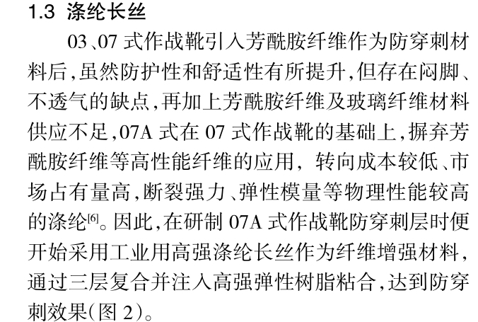 作战靴关键部位支撑防护材料应用研究