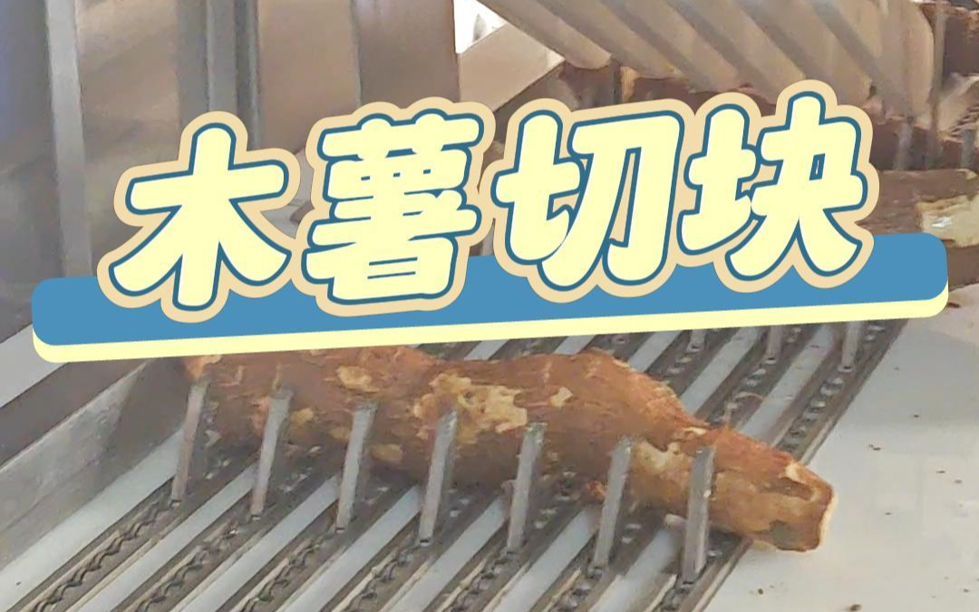 九盈机械多段锯锯骨机木薯切块,六条锯高速切割,原料瞬间切成七段,切口平滑如镜