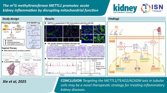 易基因:METTL1介导RNA m7G甲基化在急性肾脏炎症中的致病机制及治疗潜力