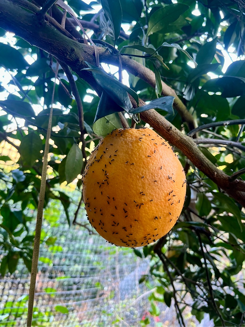 被蚂蚁嚯嚯过的脐橙就是这样,长不大还有点丑