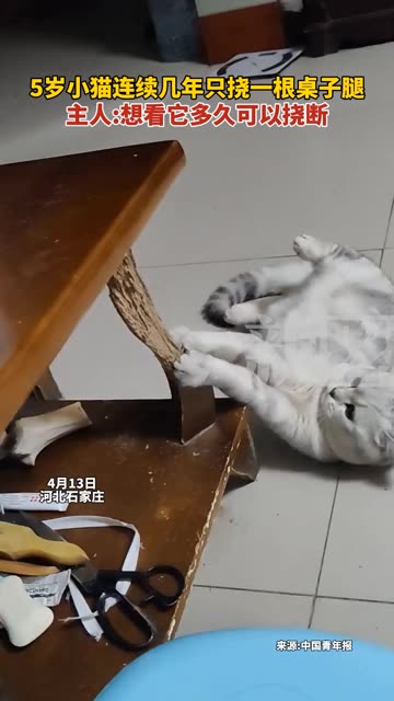 0次播放 | 00:175岁小猫连续几年只挠一根桌子腿,主人:想看它多久可以挠断。