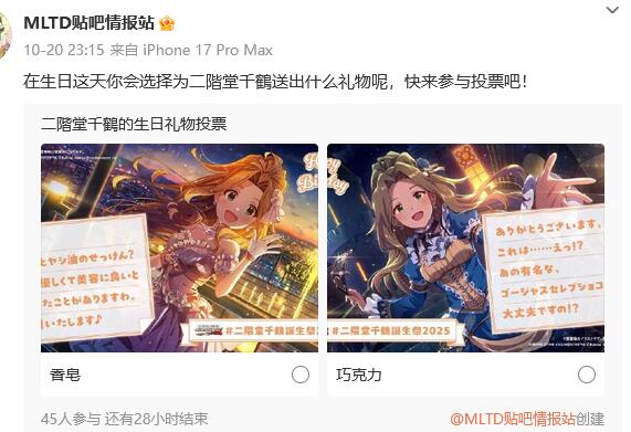 在生日这天你会选择为二階堂千鶴送出什么礼物呢,快来参与投票吧!