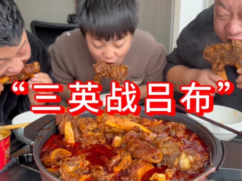 69次播放 | 04:00胖龙用200元做道“三英战吕布”三人围着热锅,吃的得劲!