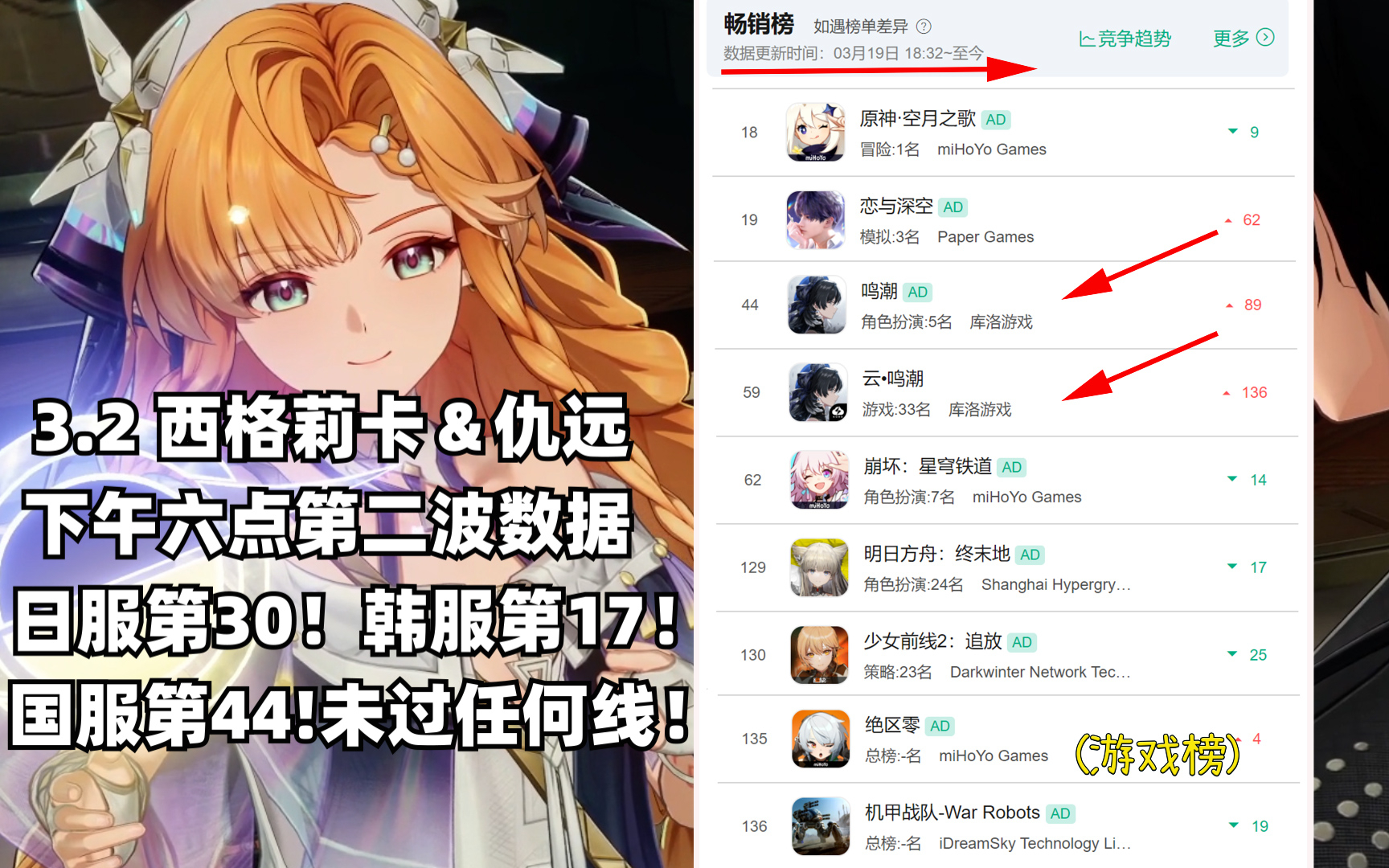 (鸣潮)3.2 西格莉卡 首日流水大拉胯!和仇远比例 2.2 : 1!国服峰值排名第43!未过任何线