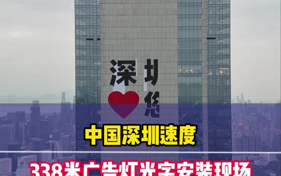 中国深圳速度338米广告灯光字安装现场