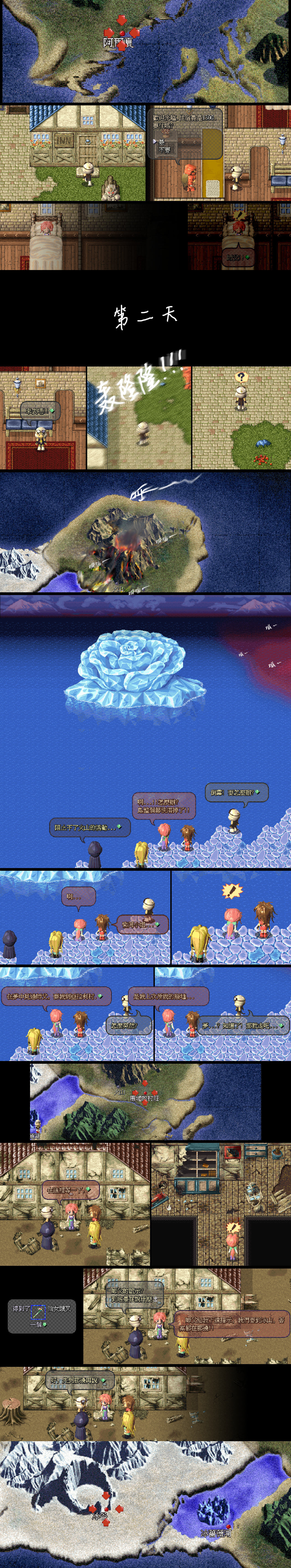 EXIT孙悟空、紫河、美娜、蒙面人、破无长途跋涉来到北洲阿尔夏,先去旅馆休息。睡梦中紫河似乎听见了师父有话对自己说。第二天刚出旅馆火山就爆发了,几人赶紧前往冰蔷薇湖查看情况,岩浆已经蔓延过来,整个冰岛