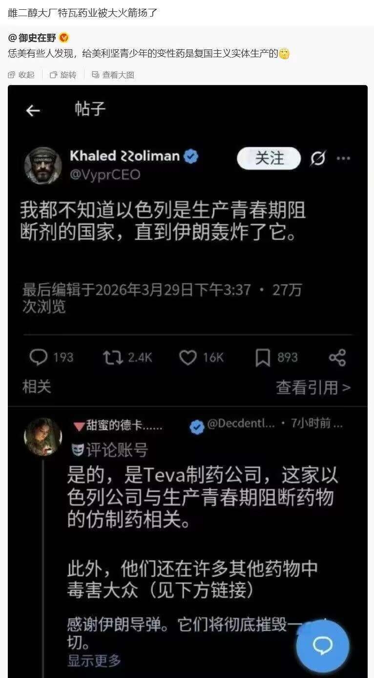 1329次播放 | 02:00美国网民发现伊朗炸的以色列工厂生产美国青少年变性药