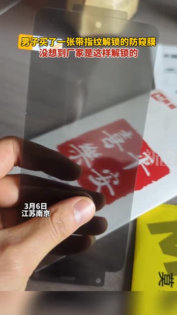 男子买了一张带指纹解锁的防窥膜,没想到厂家是这样解锁的。