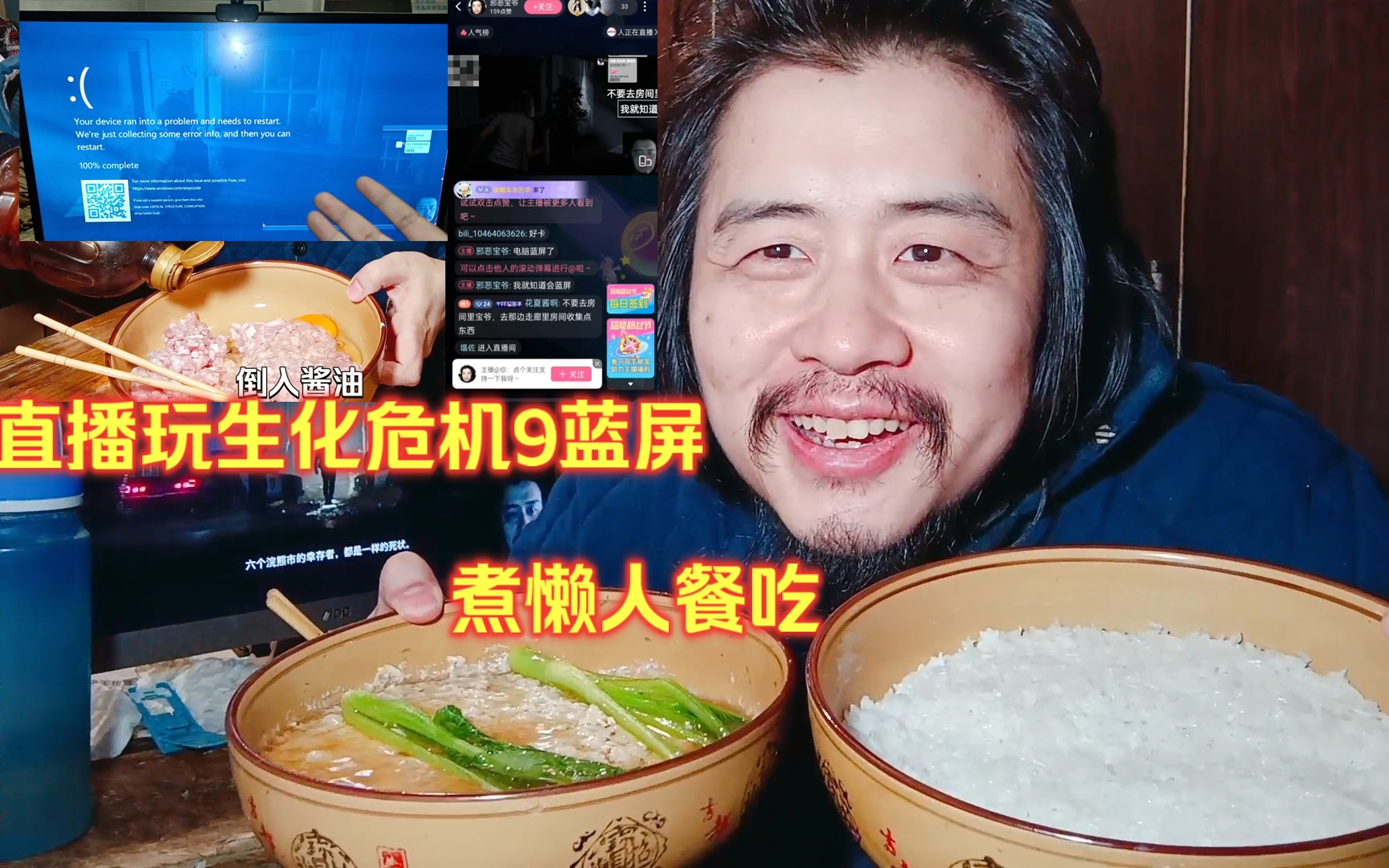 107次播放 | 01:36宅男通宵直播玩生化危机9蓝屏死机,煮懒人餐吃鸡蛋汽水肉菜心米饭