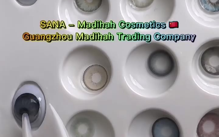 0次播放 | 00:23Madihah彩妆硅水凝胶彩色隐形眼镜生产厂家,日抛半年抛水光大小直径美瞳工厂