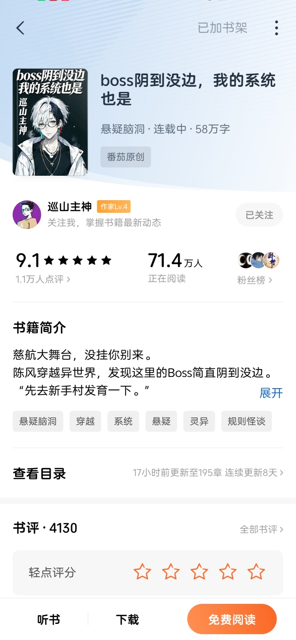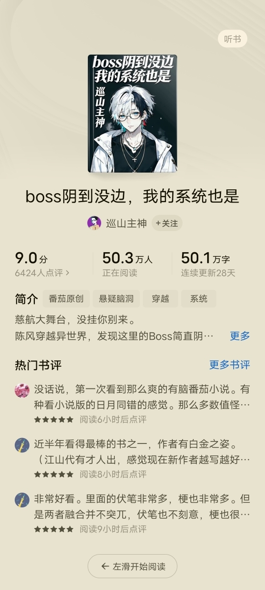 二月份的时候有人发文章说了下https://m.acfun.cn/v/?ac=48267634&sid=770adca3b3b4ba1a 当时去番茄截了个图现在不到一个月,在线阅读人数又涨了20万在排