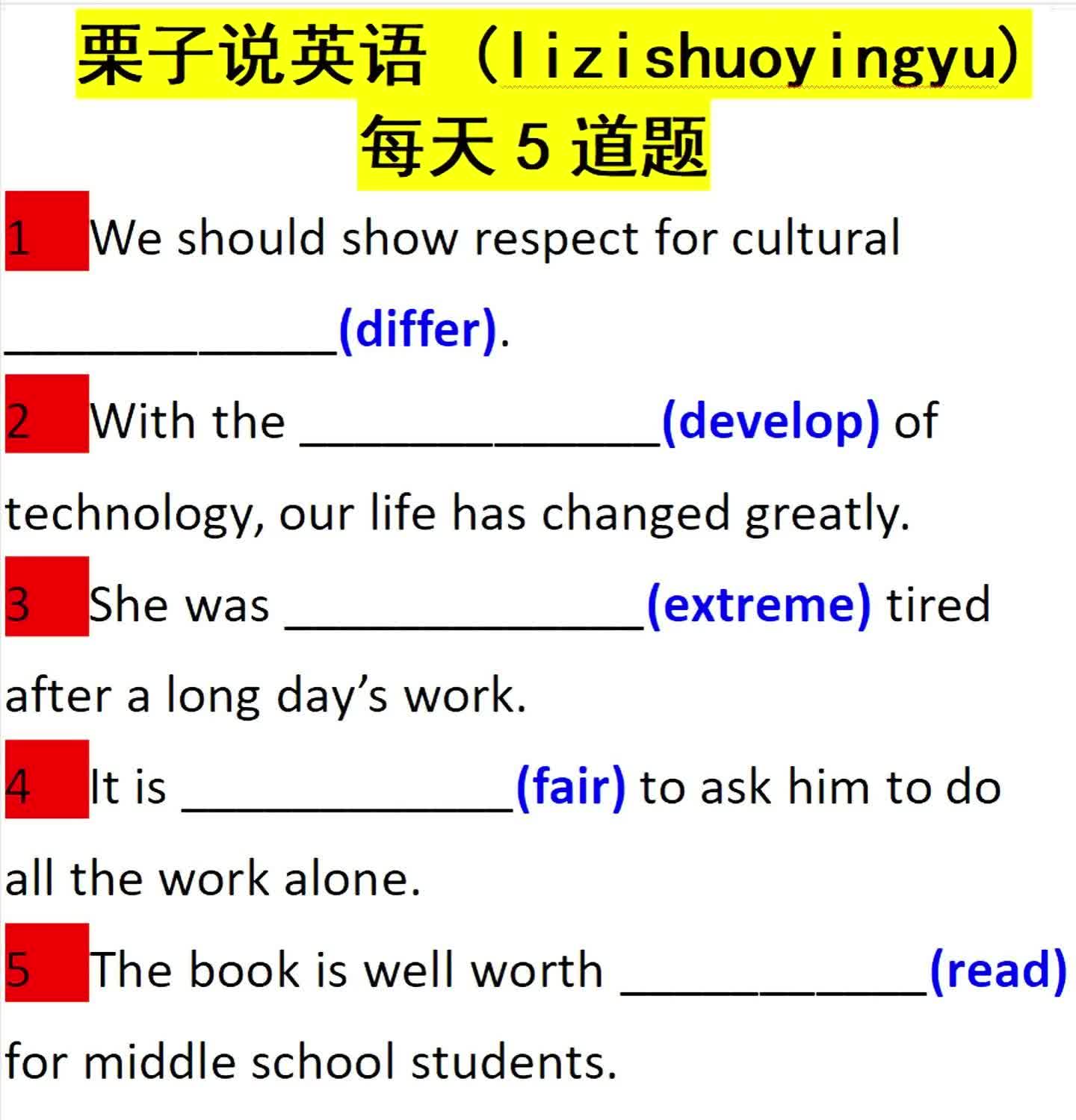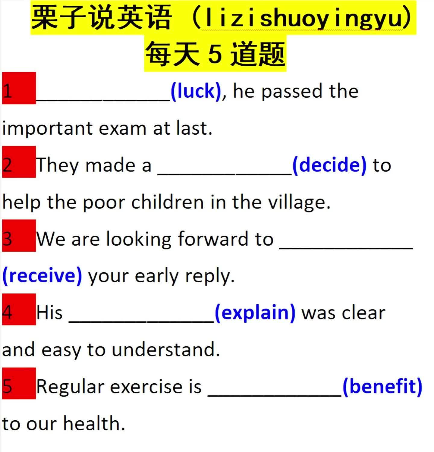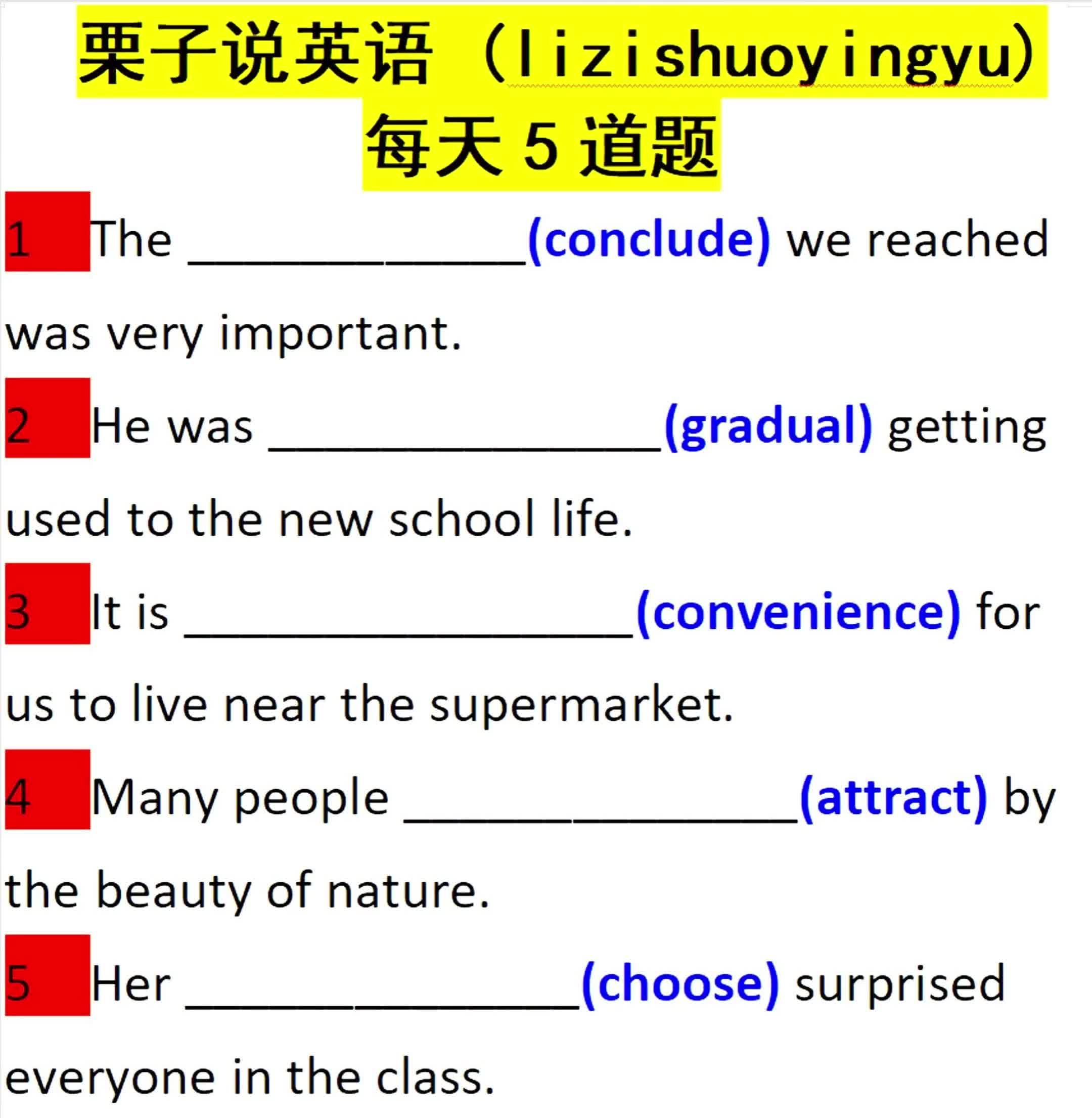16次播放 | 01:48每天5道题:用所给单词的适当形式填空0221