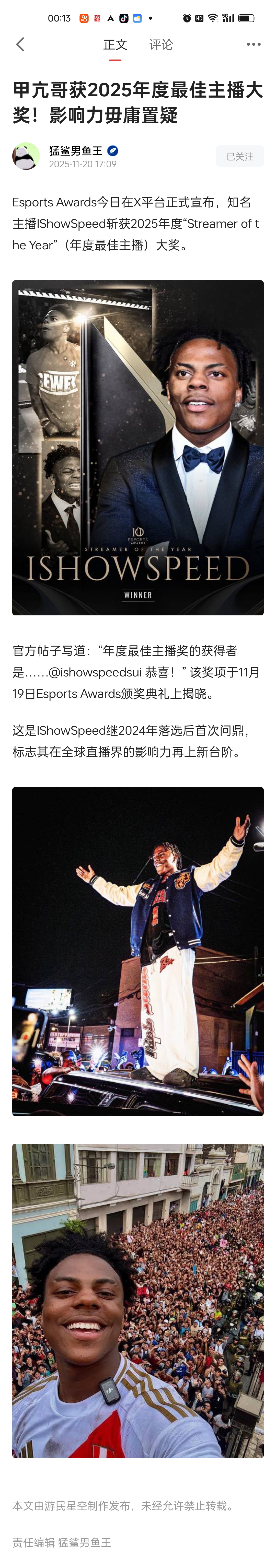 甲亢哥获2025年度最佳主播大奖!影响力毋庸置疑