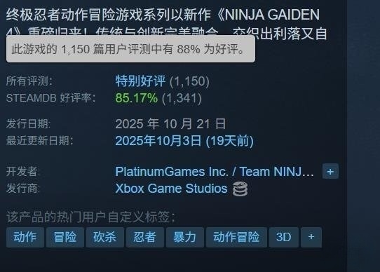 爷青回!《忍龙4》Steam首日简中好评超90%