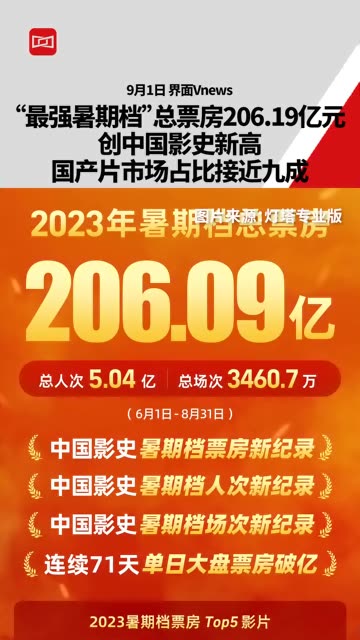 50次播放 | 01:27“最强暑期档”总票房206.19亿元创中国影史新高,国产片市场占比接近九成
