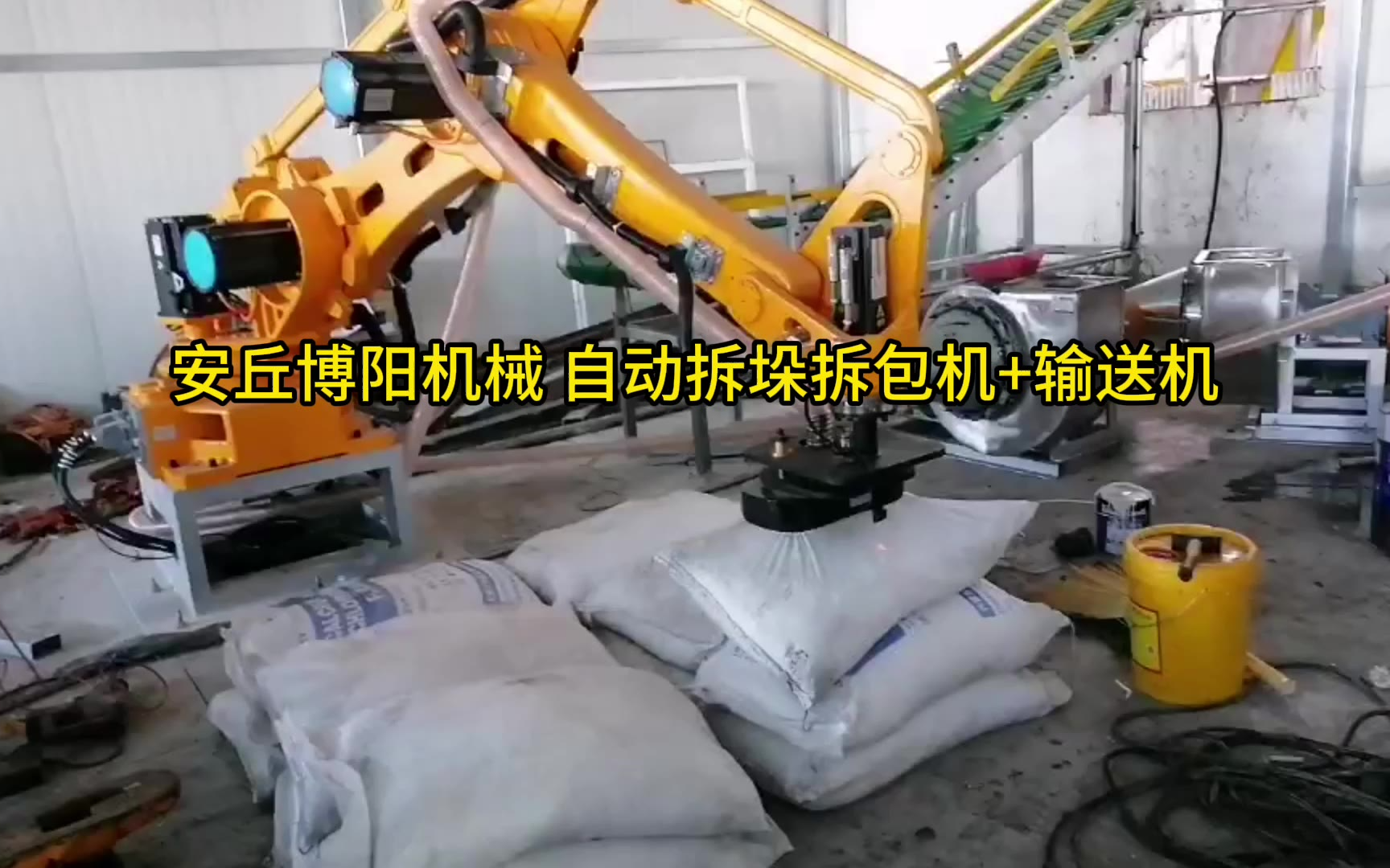 12次播放 | 00:29硼酸全自动破袋机工作流程 自动拆包机械手优势展示