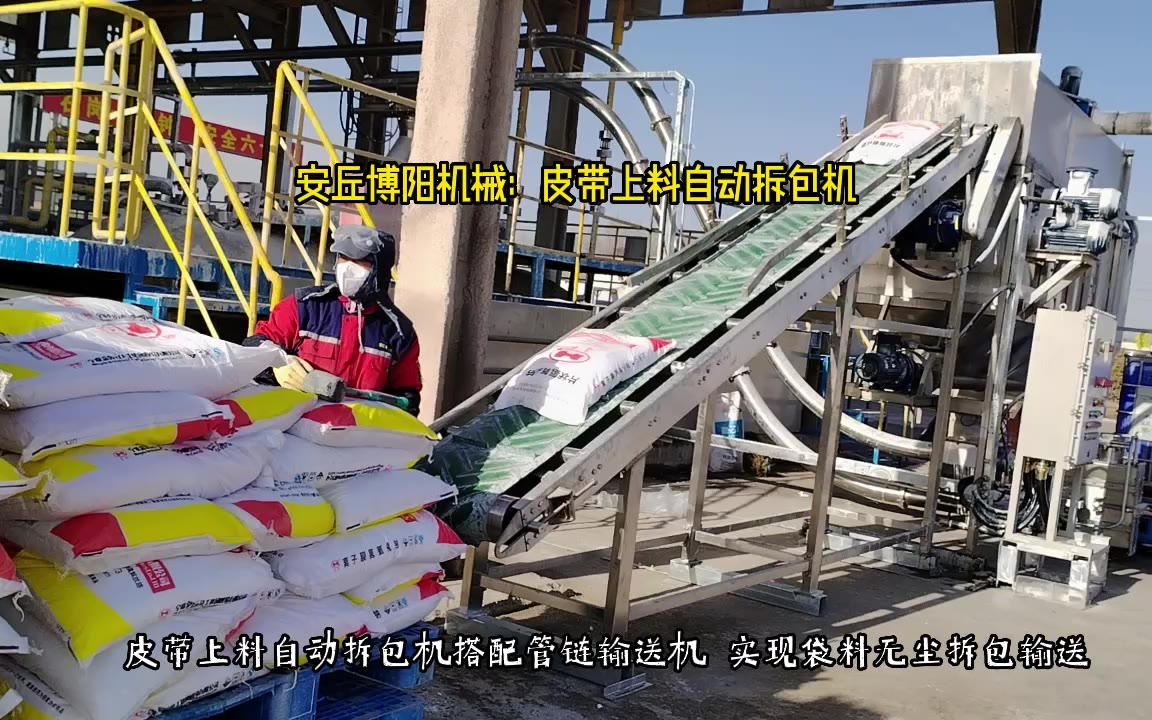 0次播放 | 00:20氢氧化钠自动拆袋机 自动拆包输送设备优势